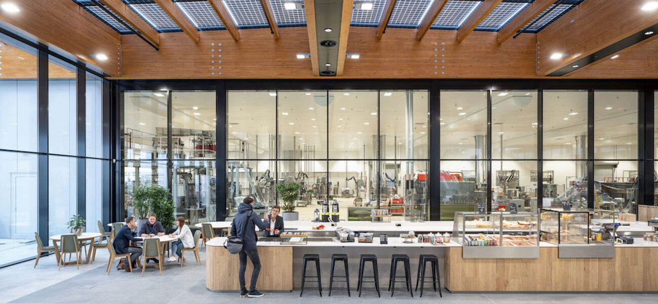 Unilever opened the Foods Innovation Centre in December of 2019. Located on the campus of Wageningen University in the Netherlands, the $94 million Hive facility offers collaborative research and development facilities for the creation of sustainable food products. Designed by Paul de Ruiter Architects, the 439,706-sf innovation hub provides laboratories, an expansive atrium, a pilot plant, an innovation kitchen, an auditorium, a food bar, a retail market, and an underground parking garage. The open-plan facility has attained BREEAM-NL Outstanding sustainable design certification and features an extensive rooftop photovoltaic array, robust structural insulation, occupancy sensors, and access to abundant natural light. The project team included interior designer Fokkema & Partners, construction manager Dura Vermeer, and engineering consultant DWA.