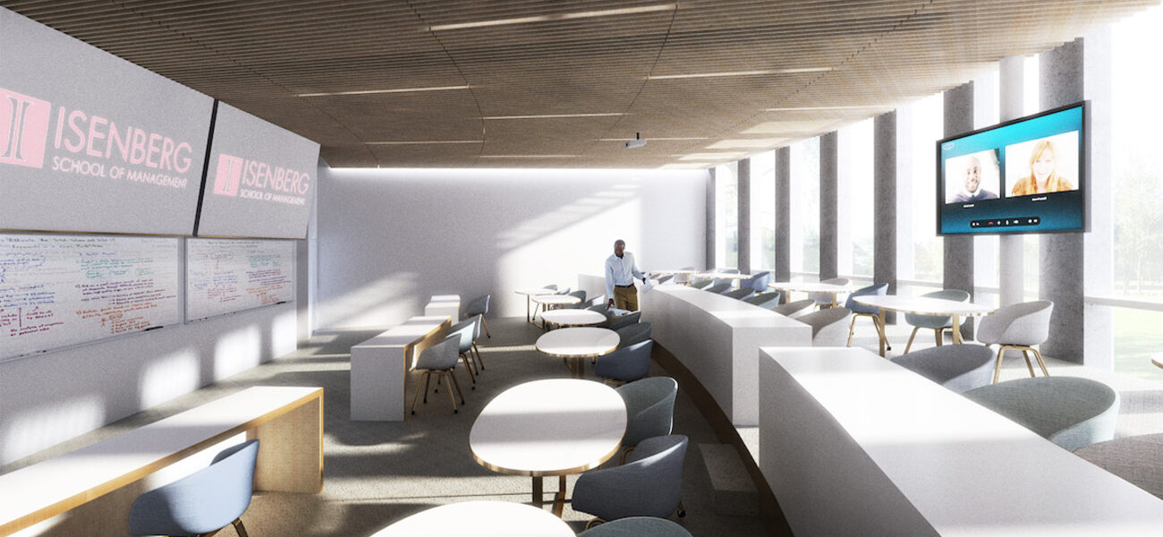 The University of Massachusetts Amherst opened the $62 million Business Innovation Hub in April of 2019. Designed by BIG (Bjarke Ingels Group) with Goody Clancy as architect of record, the 72,000-sf project represents an expansion and partial renovation of the Isenberg School of Management. Featuring flexible collaboration and social spaces, the technology-rich circular structure consolidates Isenberg’s faculty and staff in a single location to promote connectivity. The building includes a 5,000-gsf learning commons, innovation labs, classrooms with integrated distance-learning technologies, faculty offices, conference rooms, breakout areas, a business analytics lab, and a career center. LEED Silver sustainable design certification will be sought for the facility, which features extensive copper cladding on the exterior. The project team included acoustical consultant Acentech, landscape architect Towers Golde, HLB Lighting Design, interior designer MoharDesign, elevator consultant Lerch Bates, and engineering consultants Arup, Nitsch, VAV, SGH, and Haley Aldrich.