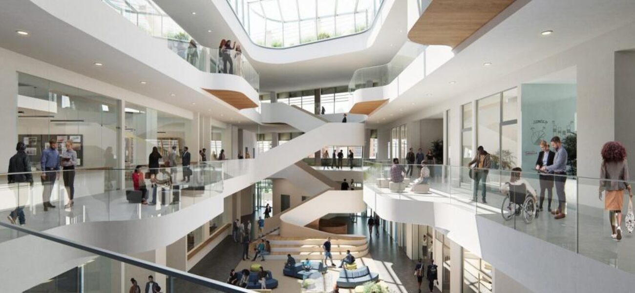 The University of Michigan broke ground in December of 2023 on a $250 million research and education building in Detroit. Designed by KPF, the University of Michigan Center for Innovation (UMCI) will accommodate graduate programs in computer science, robotics, artificial intelligence, data science, cybersecurity, financial technology, and sustainability. The 200,000-sf facility will also foster engagement with area residents by offering professional development classes, certificate courses, and workforce training opportunities. Featuring collaboration spaces for shared discovery with industry partners, the technology-rich structure will include flexible conference and event venues to promote knowledge exchange and the exploration of interdisciplinary synergies. Occupancy is expected in spring of 2027.