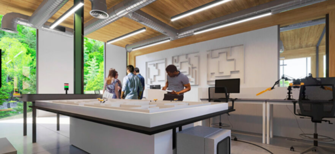 Targeting LEED Gold certification, the net-zero-energy facility will integrate cross-laminated timber to reduce embodied carbon. A mechanical basement will house heavy equipment, eliminating the need for a penthouse, with upper floors employing vibration mitigation technologies to protect sensitive research areas. These strategies will allow for the incorporation of an unrated timber structural system, resulting in thinner floor panels, smaller framing members, and simpler connections. Featuring rooftop photovoltaic arrays, the all-electric building is expected to achieve the Energy Petal of the Living Building Challenge. A sky bridge will create a physical link to the adjacent Communications Facility, which will offer 20,000 sf of renovated space to enhance interdisciplinary synergies.