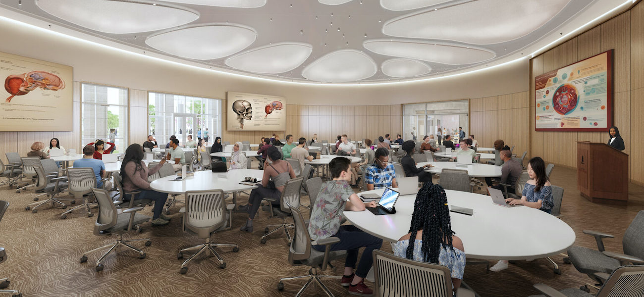The University of South Carolina is planning to begin construction in 2025 on the School of Medicine Columbia. Serving as the centerpiece of a $300 million campus, the 300,000-sf facility will feature active learning classrooms, extensive medical simulation spaces, interdisciplinary laboratories, and a health science library. An adjoining biomedical research wing will advance the creation of novel therapies and treatments, with a central landscaped courtyard offering settings for informal exchange.