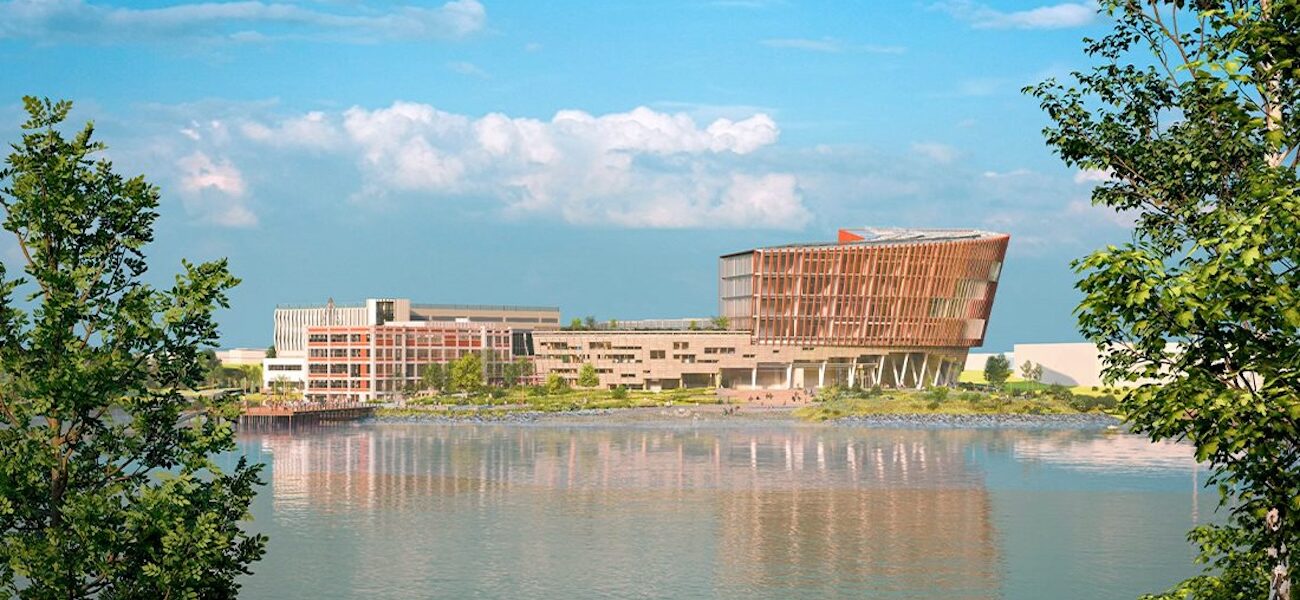 Northeastern University is constructing a permanent campus for the Roux Institute in Portland, Maine. Designed by CambridgeSeven, the $500 million project will feature the 245,000-sf Alfond Center, a vibrant hub for learning, research, and collaboration. The six-story facility will accommodate programs in artificial intelligence, computer and data sciences, digital engineering, life sciences, and medicine. Computational academic spaces, wet labs, and active learning classrooms will be arranged around a central gathering area with lecture, conference, and meeting venues.