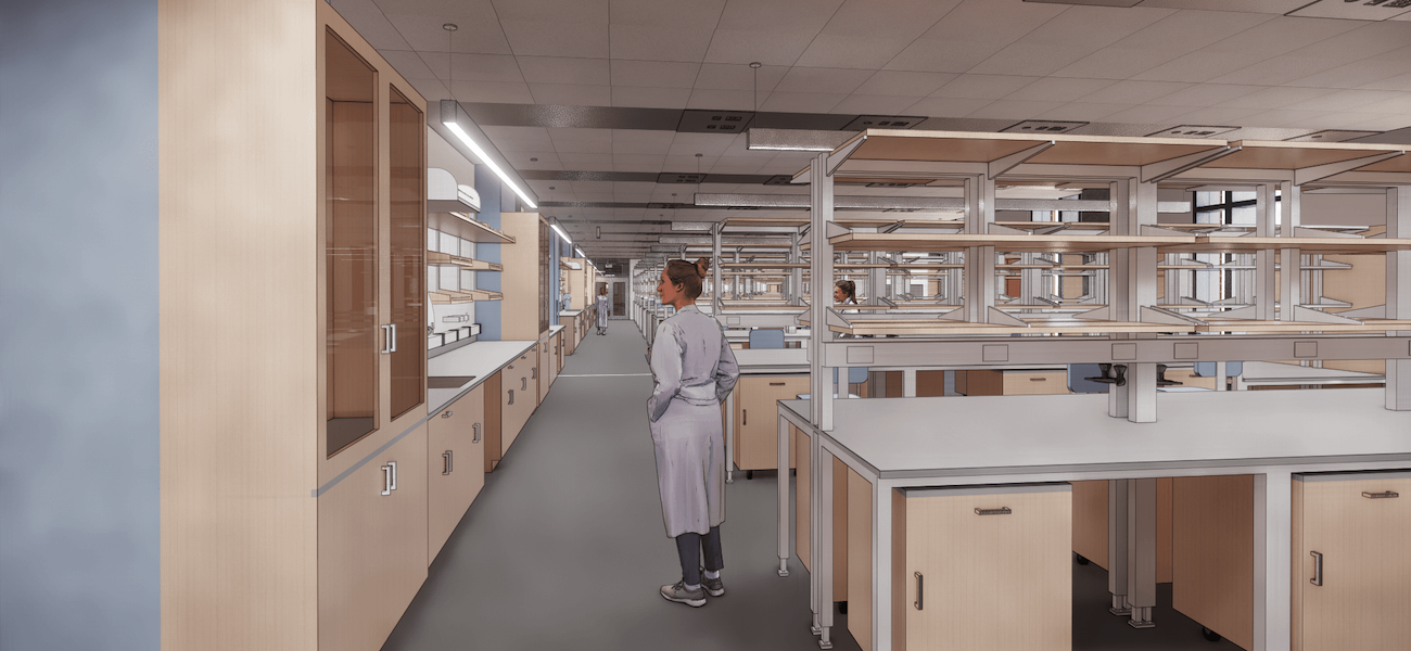 The University of Delaware opened a $180 million science and innovation facility in April of 2025 to catalyze interdisciplinary discovery and expand educational capacity. Built on the former site of McKinley Hall in Newark, the 132,500-sf building houses research and teaching labs with damp and dry functionalities, faculty offices and student workspaces, and conference rooms. Standing three stories above grade, the structure’s basement level accommodates an extension of UD’s Bio-Imaging Center, physics labs, and areas for the fabrication of advanced materials. Core facilities are shared between physics and life sciences, and a sky bridge creates a physical link with the adjacent Center for Biomedical and Brain Imaging. An inviting courtyard provides informal gathering areas to foster interaction.