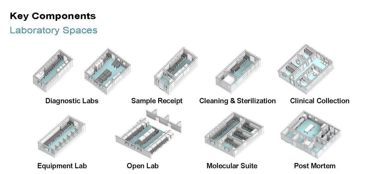 A new approach to the design of diagnostic labs in resource-constrained settings reduces risk and improves outcomes while accelerating the project timeline and lowering costs. The approach is based on the concept of One Prototype, which uses similar design modules as a starting point for each lab facility, whether new construction or renovation, no matter what the scale.